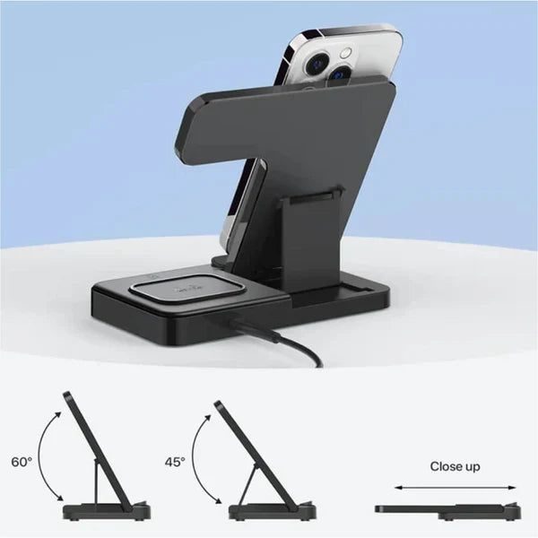 A solução perfeita para carregar seus dispositivos de forma prática e moderna! Compatível com celular, fones e Apple Watch, essa base oferece carregamento rápido turbo para você ganhar tempo no dia a dia. Seu design dobrável e compacto facilita o transporte e economiza espaço. Além disso, o LED embutido adiciona um toque de sofisticação e funcionalidade ao seu ambiente. Ideal para quem busca eficiência e estilo!